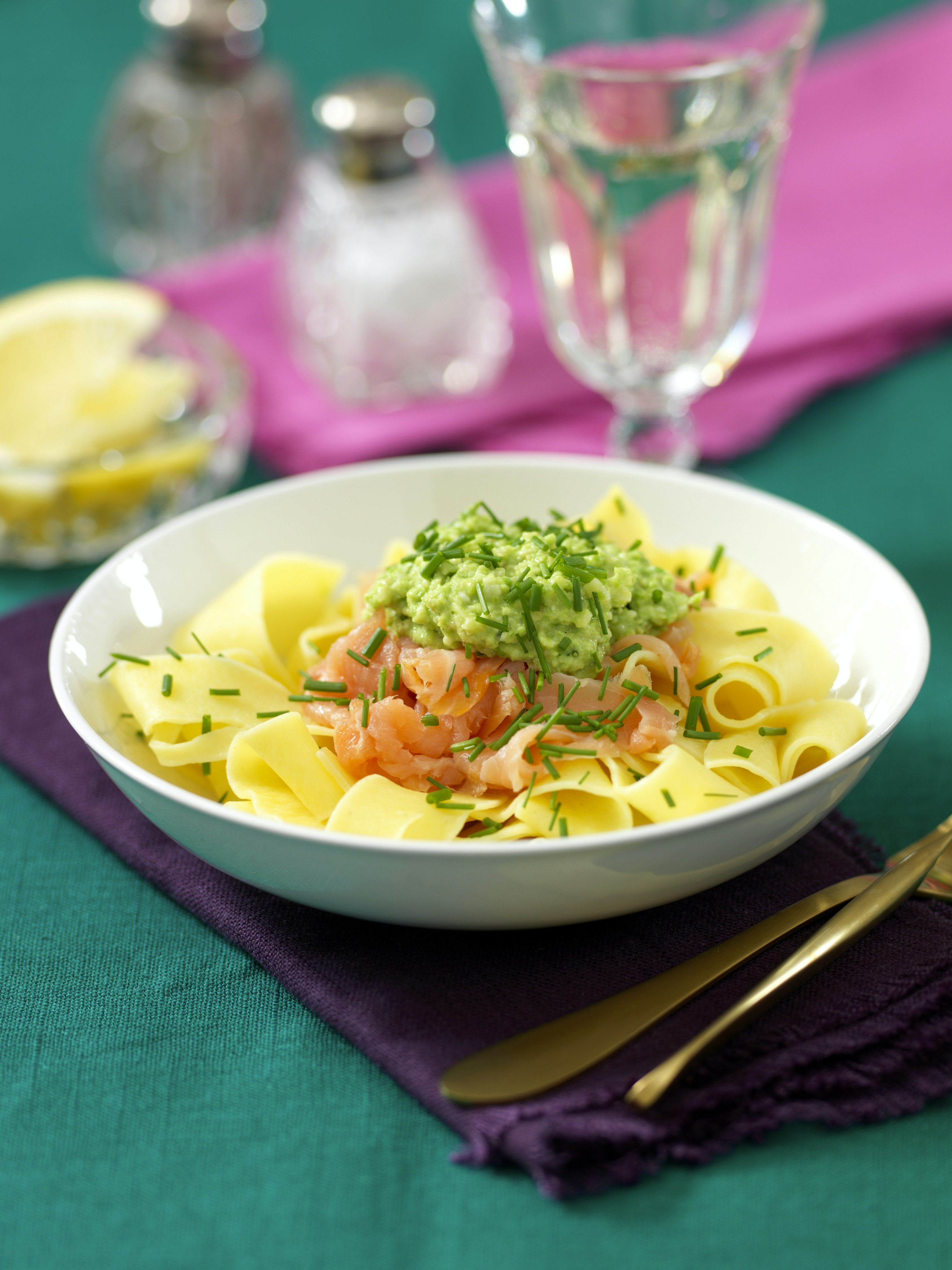 Pasta Med Varmrokt Lax Spenat Och Citron Dillsas Abba